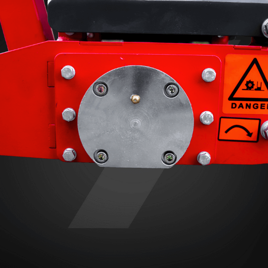Zastosowany napęd na paskach klinowych działa jak naturalne zabezpieczenie. Przy przeciążeniu paski zaczynają się ślizgać, chroniąc silnik i bęben przed uszkodzeniem. Napięcie reguluje się wygodnie dwiema śrubami.