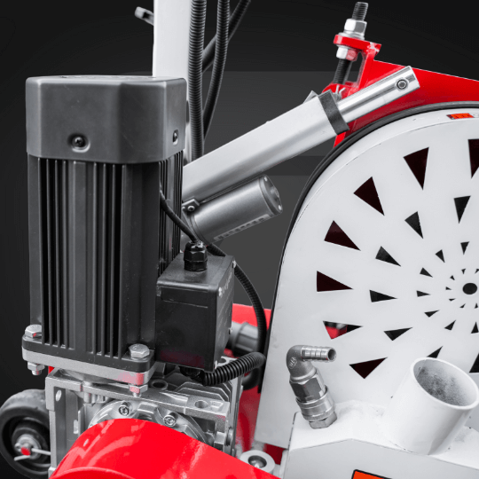 Frezarka wyposażona jest w trójfazowy silnik 4 kW | 400 V, który bez trudu radzi sobie zarówno z miękkimi jastrychami, jak i twardym betonem. Maksymalna średnica frezu to 130 mm, a otwór mocujący – 22,2 mm.