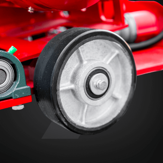 Tylne koła transportowe z bieżnikiem gumowym ułatwiają manewrowanie maszyną na placu budowy.