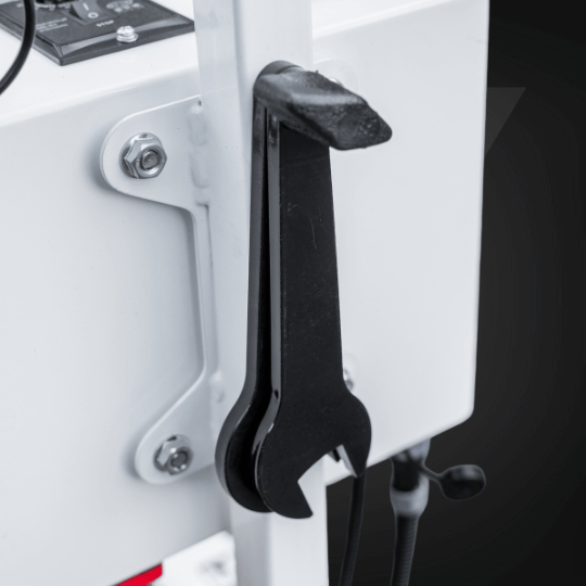 Regulacja głębokości frezowania odbywa się elektrycznie – poprzez wygodny przełącznik góra–dół. Pozwala to szybko i dokładnie ustawić głębokość bruzdy do 25 mm, bez tracenia czasu na manualne regulacje.