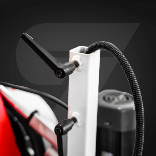Wersja AUTOMAT posiada własny silnik jezdny (0,44 kW) oraz płynny potencjometr regulacji posuwu. Maszyna sama utrzymuje wybraną prędkość pracy, dzięki czemu operator skupia się na prowadzeniu i dokładności cięcia.