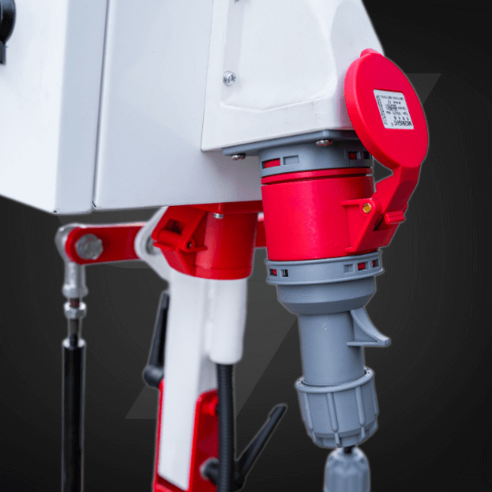 Bezpieczne złącze trójfazowe 400 V z blokadą obrotu – łatwe i bezpieczne podłączenie do źródła prądu.