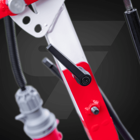 Składana rączka pozwala na szybkie przygotowanie maszyny do transportu i łatwe przechowywanie na budowie lub w aucie.