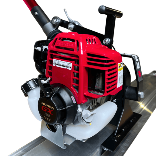 Listwa wibracyjna jest napędzana czterosuwowym silnikiem Honda GX25, pracującym na paliwie bezołowiowym 95, co zapewnia niskie zużycie paliwa i dużą wydajność. Dzięki częstotliwości wibracji do 9000 wib/min oraz sile odśrodkowej 1500 N, gwarantuje doskonałe efekty wyrównywania. Długość dyszla sterującego wynosi 1,8 m, co zwiększa wygodę obsługi, a ciężar kompletnej maszyny to jedynie 17 kg, co ułatwia transport i manewrowanie.