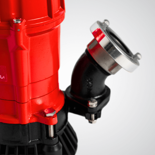 - Kolano tłoczne z przyłączem – ułatwia szybkie podłączenie węża tłocznego i umożliwia dopasowanie kierunku wylotu wody.