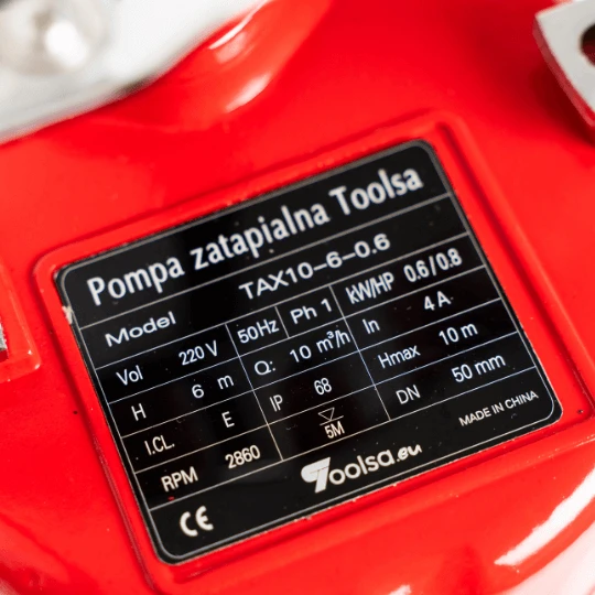 Toolsa TAX10-6-0.6 to pompa do użytku domowego, komercyjnego i przemysłowego. Doskonale sprawdzi się przy odwadnianiu terenów i piwnic, w instalacjach ściekowych, przy usuwaniu osadów ze zbiorników, a także w systemach zaopatrzenia w wodę surową z jezior czy rzek. Minimalna wysokość zasysania 2 mm pozwala skutecznie usuwać wodę niemal do samego dna.