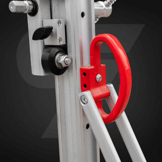 - System modułowy z aluminium – pozwala na łatwe dopasowanie i modyfikację konstrukcji statywu.