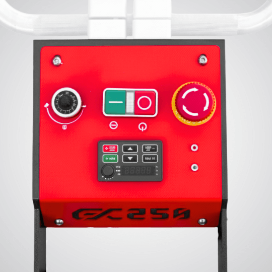 Toolsa GX 250 to wydajna jednotarczowa szlifierka do betonu o szerokości roboczej 250 mm, zaprojektowana do precyzyjnego szlifowania i polerowania posadzek w trudno dostępnych miejscach, przy ścianach oraz na mniejszych powierzchniach. Wyposażona w falownik 2,2 kW umożliwiający regulację prędkości w zakresie 350–1500 obr./min, gwarantuje optymalne dopasowanie mocy do rodzaju podłoża.