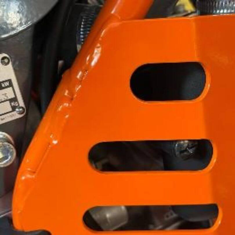 Stalowa osłona chroni silnik z obu stron, zabezpieczając przed uszkodzeniami podczas transportu i pracy.