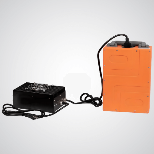 Akumulator o pojemności 20,8 Ah i wadze 6 kg można szybko wymienić i w pełni naładować w 120 minut. Wysokowydajna ładowarka oraz kompaktowa konstrukcja całego zestawu (waga 13,6 kg) zapewniają wygodę transportu i użytkowania w dowolnych warunkach.