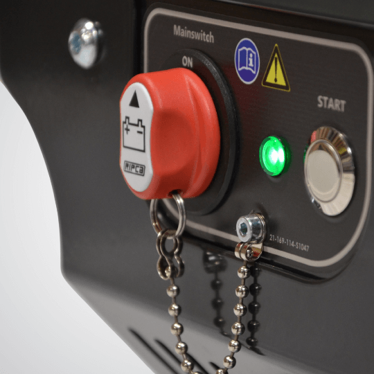 Kluczowa stacyjka z przyciskiem bezpieczeństwa umożliwia szybkie uruchomienie i natychmiastowe zatrzymanie maszyny.