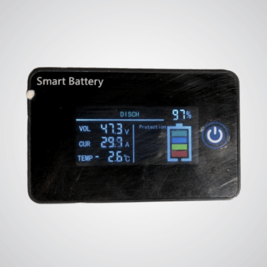 Kolorowy ekran pokazuje poziom naładowania, napięcie, temperaturę i liczbę cykli ładowania – pełna kontrola stanu akumulatora.