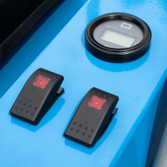 Intuicyjne przyciski do sterowania oświetleniem oraz czytelny licznik motogodzin.