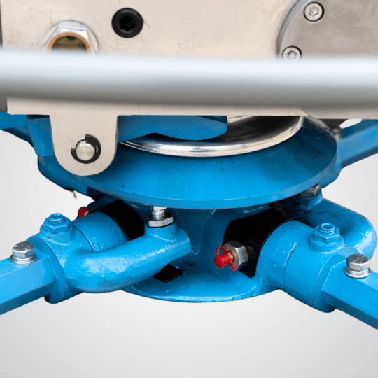 Wytrzymała budowa z precyzyjnie obrabianą płytą centralną i ramionami łopatek zapewnia długą żywotność i odporność na zużycie. Przekładnia z dużym zbiornikiem oleju pozwala na chłodną, bezawaryjną pracę. Wysokiej klasy sprzęgło BLM i podwójny pas napędowy wspierają niezawodność w każdych warunkach.
