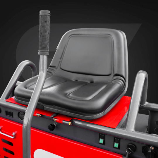 Podwójne manetki sterujące odpowiadają za płynne prowadzenie maszyny i kontrolę kierunku.